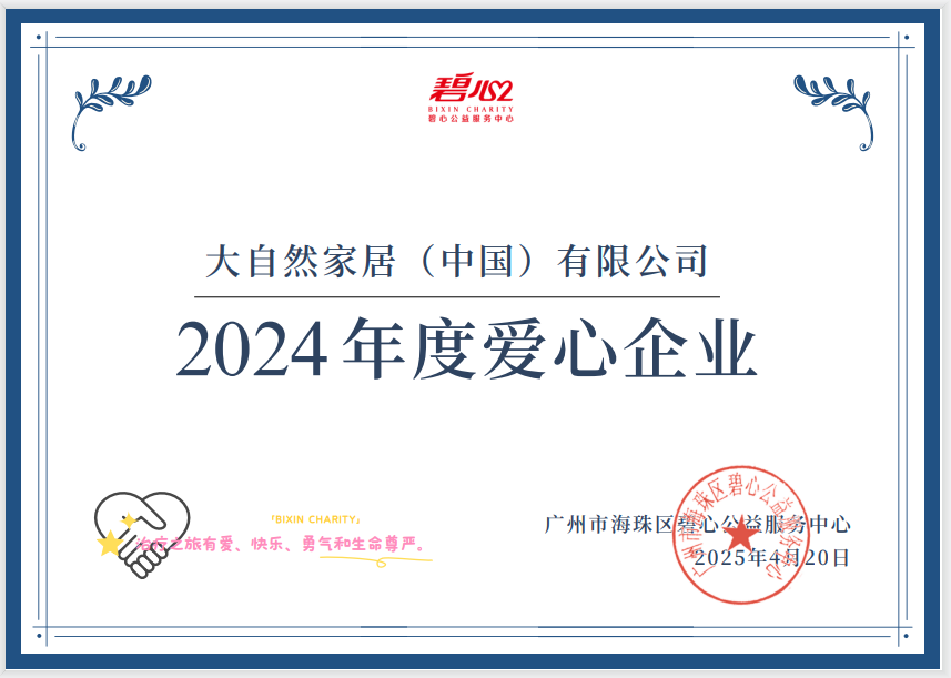 大自然家居堅(jiān)持“擔(dān)環(huán)保責(zé)任、普健康生活、做健康家居”的企業(yè)使命。2006年,大自然推出“中國(guó)綠色版圖工程”,至今每年堅(jiān)持公益植樹(shù),向中國(guó)綠化基金會(huì)累計(jì)捐資2000萬(wàn)元,先后在國(guó)內(nèi)外組織“我為黃河種棵樹(shù)”、“我為呼吸種棵樹(shù)”、“我為孩子種棵樹(shù)”、“我為藍(lán)天種棵樹(shù)”等公益植樹(shù)活動(dòng),在國(guó)內(nèi)外22個(gè)地區(qū)已種植30片生態(tài)林,植樹(shù)超100萬(wàn)棵。