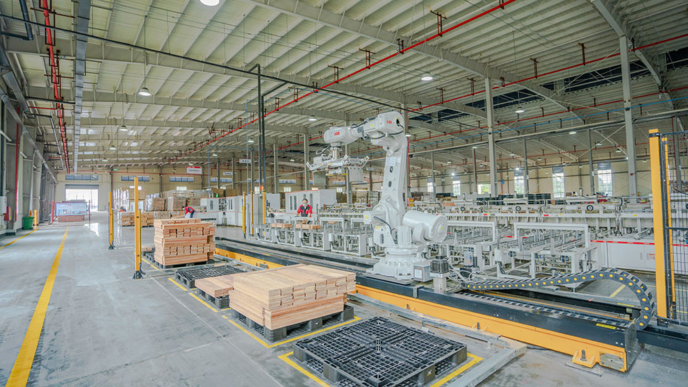 贛州大自然家居為大自然家居集團新投資興建的智能制造產(chǎn)業(yè)基地,為集團首家實現(xiàn)實木地板智能制造的標桿工廠。大自然家居從2021年起成立了三大基地智能制造工作小組統(tǒng)籌智能制造建設(shè),并制定了明確的智能制造建設(shè)規(guī)劃和智能制造實施路徑(2021-2025年),部署了ERP企業(yè)資源計劃系統(tǒng)、SCADA數(shù)據(jù)采集與監(jiān)視控制系統(tǒng)、MES生產(chǎn)制造執(zhí)行系統(tǒng)、WMS倉庫管理系統(tǒng)、SRM供應(yīng)商關(guān)系管理,OA辦公自動化系統(tǒng)、BI商業(yè)智能系統(tǒng)、ESB企業(yè)服務(wù)總線等關(guān)鍵信息化系統(tǒng),自動挑板線、智能油漆噴淋線、自動包裝線、AI視覺檢測、AGV等與信息系統(tǒng)集成實現(xiàn)生產(chǎn)環(huán)節(jié)業(yè)務(wù)協(xié)同、互聯(lián)互通、數(shù)據(jù)共享。