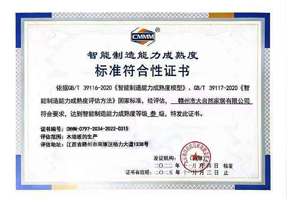 通過智能制造能力成熟度三級評估,是對贛州大自然家居智能制造實力的認可,同時也是對大自然家居集團智能制造發(fā)展戰(zhàn)略的高度肯定。未來,大自然家居集團將繼續(xù)以智能制造引領(lǐng)轉(zhuǎn)型升級,不斷增強企業(yè)創(chuàng)新能力,提高企業(yè)數(shù)字化、智能化水平,持續(xù)提升核心競爭力,為消費者提供更優(yōu)質(zhì)的產(chǎn)品和服務(wù)!