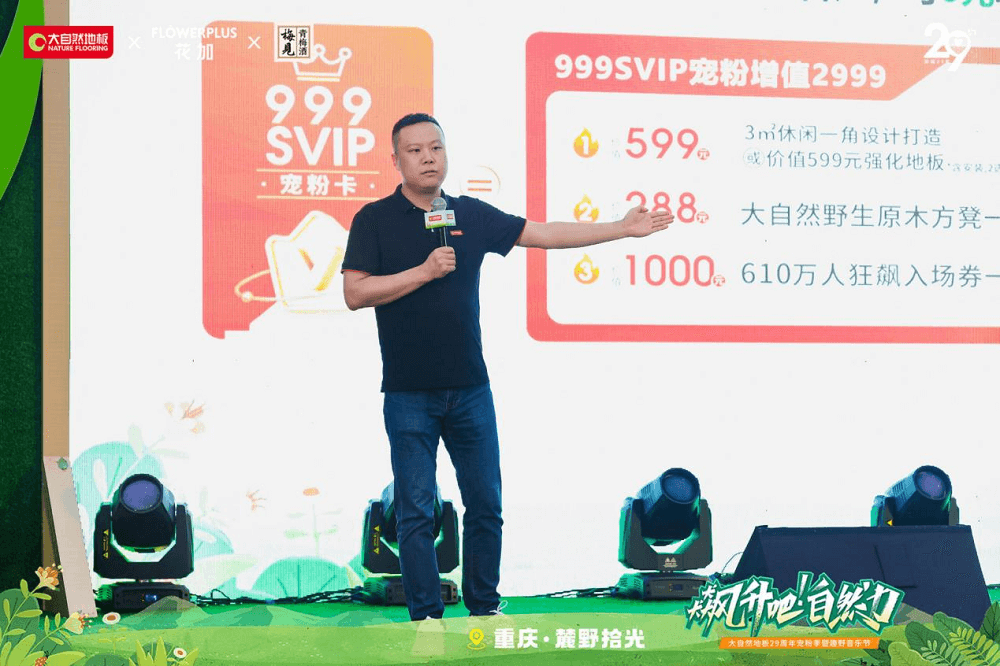 為了回饋新老客戶的信任與支持,與新消費力量同頻共振,大自然地板重慶分公司總經理王凱表示:本次活動集團總裁攜百萬豪禮回饋重慶老客戶朋友,現場首發(fā)999SVIP權益卡100張,為消費提供價值2999元寵粉大禮包,致敬所有客戶的信任與支持。