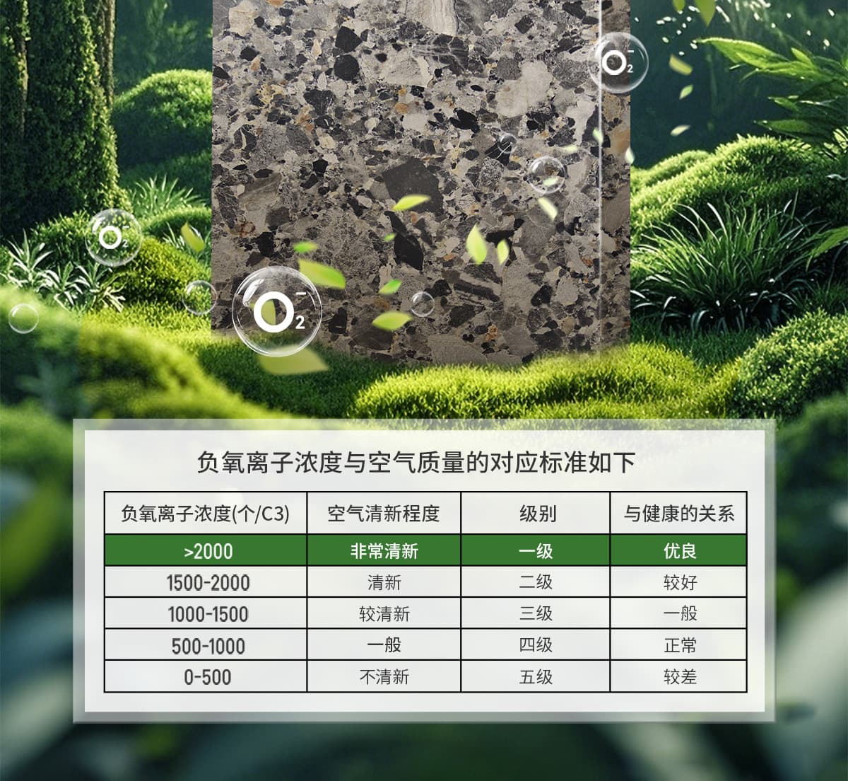 | 誘發(fā)空氣負離子量 | 比基礎環(huán)境提高10倍+ |